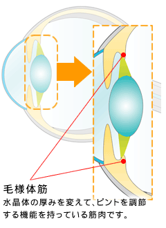 ダイレクトに毛様体筋に働きかけ、固まった毛様体筋をほぐし、目のレンズ調整が行いやすくなります。