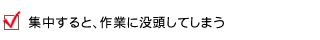 パソコンや勉強、ゲームなどを集中して長時間続けていると、毛様体筋が緊張し続ける状態になり、視力低下だけでなく、眼精疲労や肩こり・頭痛などの原因にもなります。 集中力のある人は、近視になりやすい傾向がありますので、注意が必要です。