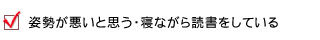 小さいお子様の視力が悪くなる大きな原因の一つです。無理な姿勢を続けると身体に負担がかかり、余計なところに力が入ります。その結果、目筋のバランスが崩れたり、姿勢が悪い状態が当たり前になる習慣が身につき、近視を加速させてしまいます。