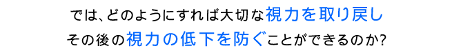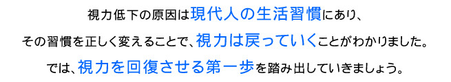 このような方法は、「視力が悪い」と言う症状だけに眼を向けたものであり、一時的な対処療法でしかありません。