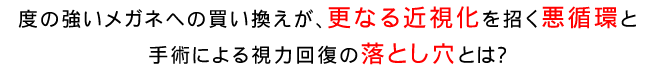 しかし、これらの方法は全てその場しのぎの対処両方となってしまい、目の機能の更なる低下や、様々なリスクを背負うことになってしまいます。しかも、右記にまとめてあるような落とし穴が、至る所に待ち構えています。