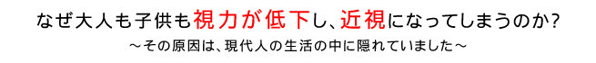 現代人の生活の中に必ず入っている習慣。それこそが、大人・子供を問わずに視力が低下し、近視になっている原因なのです。